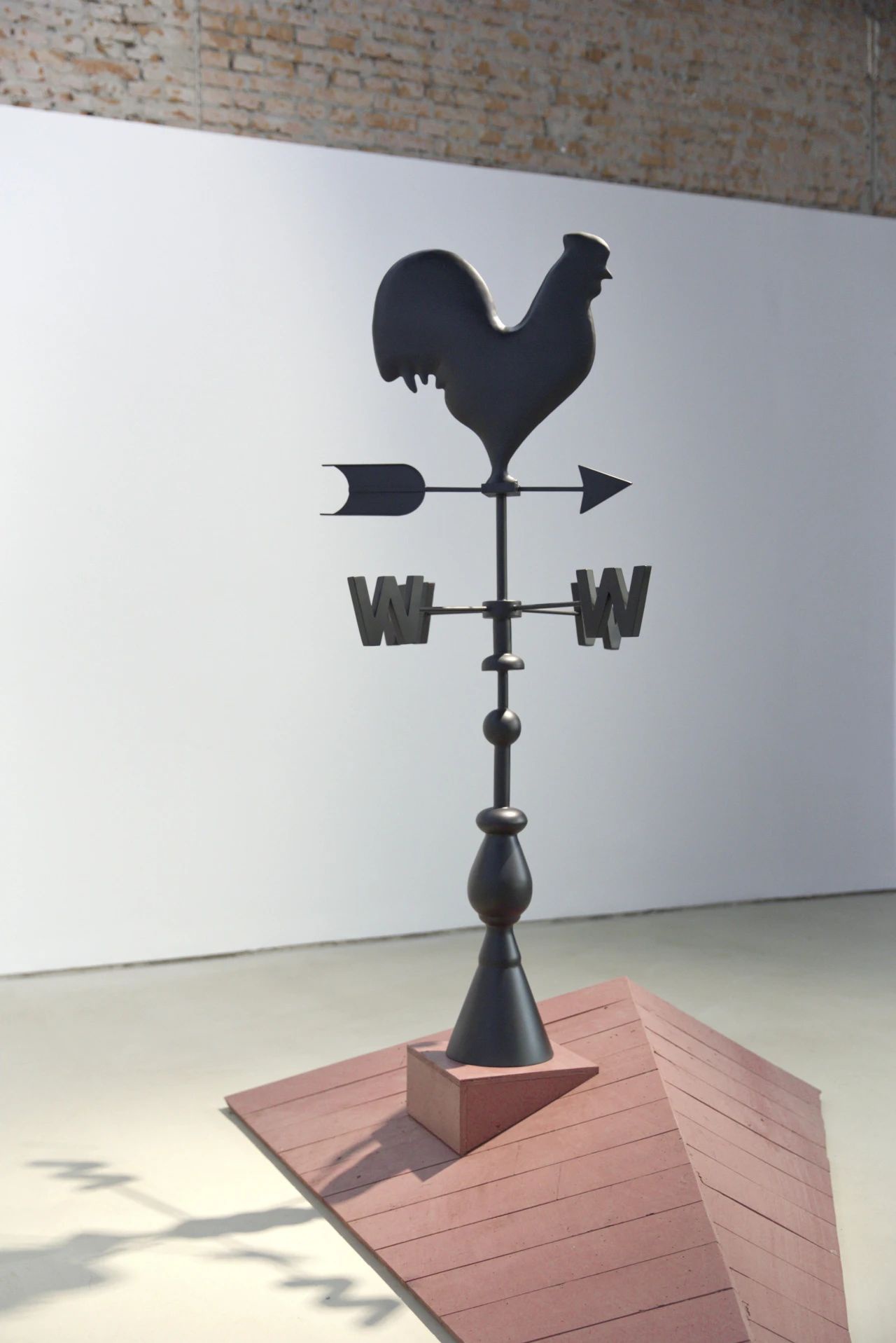作品《西风》原型来源于欧洲屋顶常见的“风信鸡”,它其实是风向标,作者是想表达城市的地理方位和风的关系。