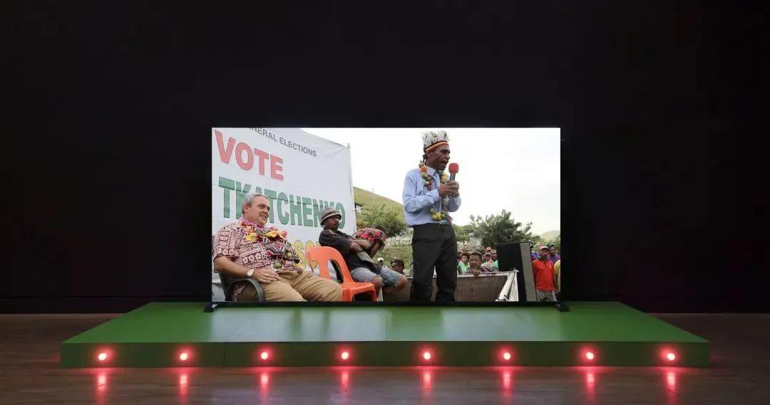 “皮钦光谱”借用了电影工业中的“非线性编辑”概念,展现了中国艺术家在文化输入、编辑、输出过程中的多元和融合。作为展品之一,光影作品《部长》叙述了巴布亚新几内亚国会议员、土地部长、APEC事务部部长的个人经历。影片以其富有张力的表现手法,讲述了在城市变革中的个体生存。