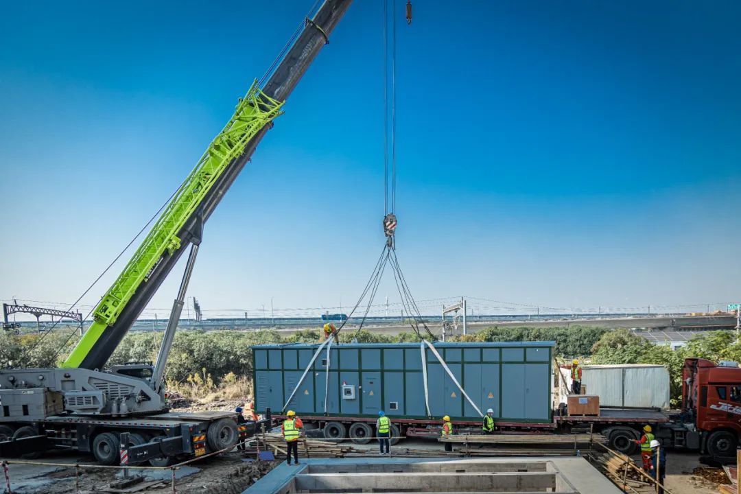 虹桥箱式分区所成功安装就位。分区所在牵引供电系统中的作用是使同一供电分区的上、下行接触网并联工作或单独工作,相邻变电所检修或故障时,可以通过分区所实现双边供电或越区供电。箱式分区所是将高低压设备系统集中在一个箱体中,安装在提前制作好的承台基础上,因而得此名。