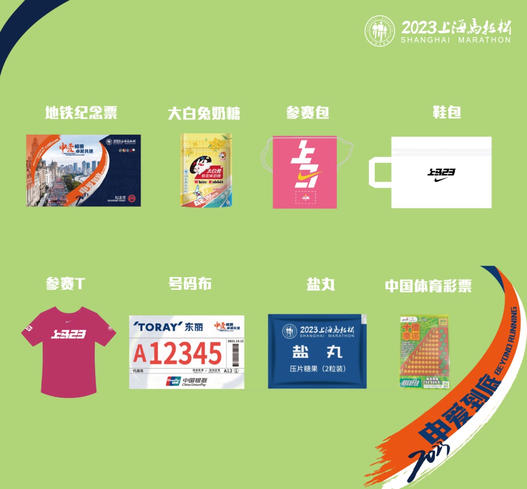 赛前,所有跑者的存衣包中除了竞赛必备物品外,还将放入一张可以来回乘坐两次的地铁卡,还有由NIKE提供的鞋包以及由大白兔提供的桂花味奶糖一包,为跑友赋能加油。