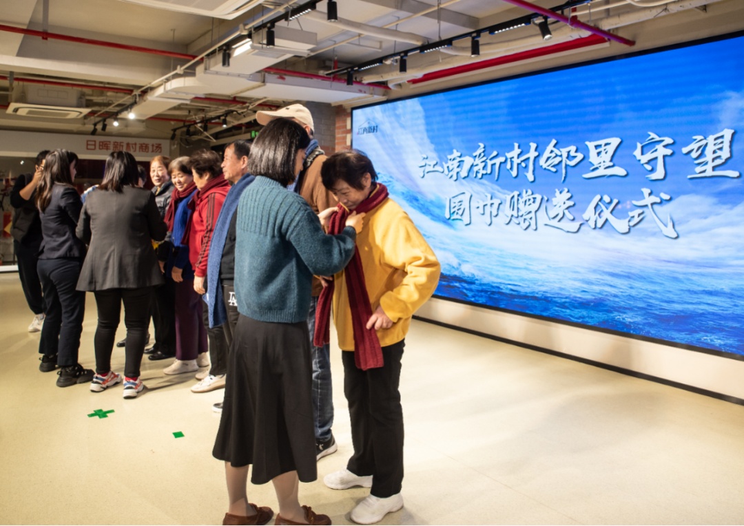 作为一个“年逾古稀”的居民区,时光却没有给江南新村带来暮气沉沉的气息,先锋志愿者队、“我家车棚”志愿者队、爱心编织组、平安志愿者巡逻队、学法维权小组、匠心舫……这些由居民组成的志愿团队给社区带来了生生不息的活力,并由江南新村逐渐辐射至敬老院、江南新村小学、周边居民区,让志愿服务的温暖传到更多人心中。本次庆祝仪式上,也为这些服务型志愿者团队颁发了荣誉证书。现场,还为社区老人送上了爱心编织组亲手制作的暖心围巾。