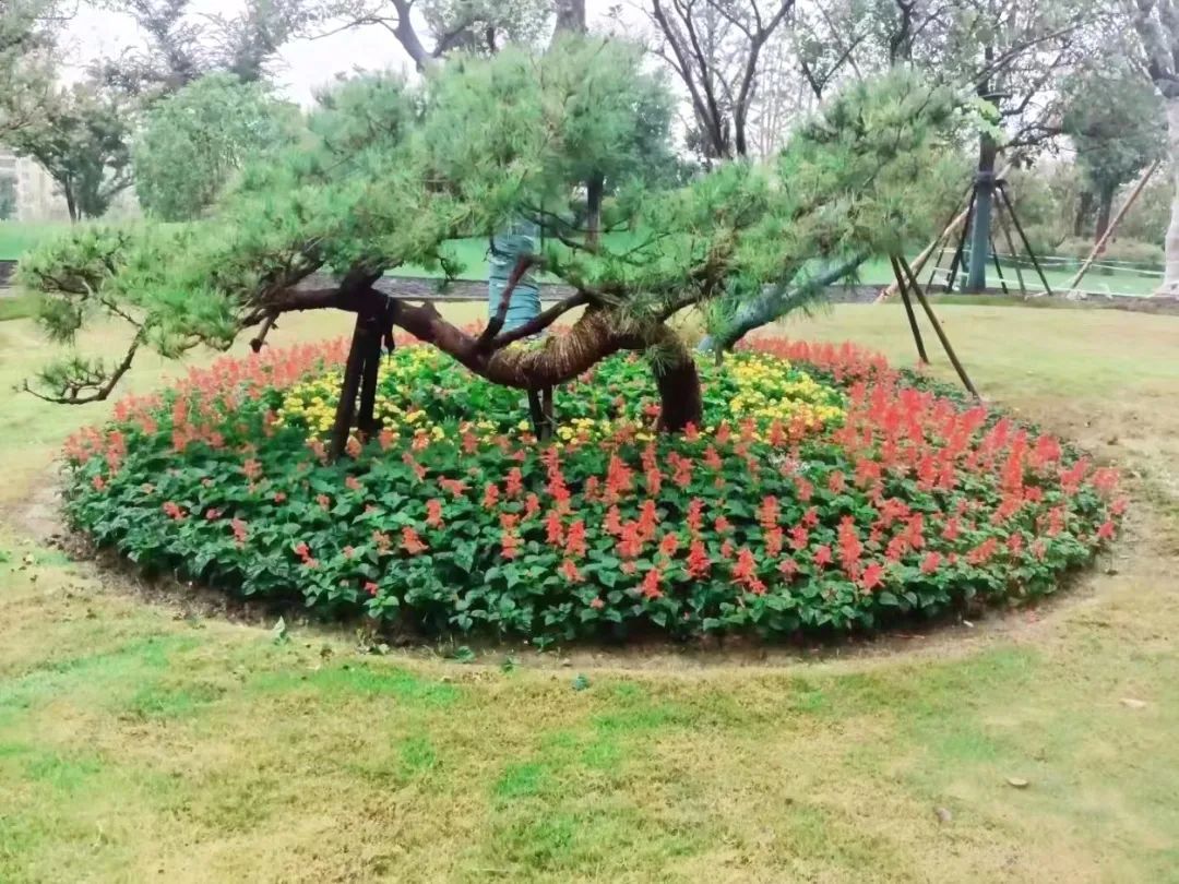 占地面积9700平方米的九曲港绿地是进入松江的“门户景观”,整体设计上以“穿云流畅,九曲云廊”为灵感,打开原本封闭的道路界面,绿化景观设计上采用“点—线—面”总体策略,以绿地内散植多年的香樟树为亮点,辅以季相变化分明的春夏花卉和秋冬叶乔木,通过花境的组合形成景观节点,移步换景,一年四季花叶色彩缤纷。而绿地中央则以疏林草地的“留白”,打造大片草坪形成开放式绿地,就连休闲廊架等设施也因别致线条和造型充满艺术色彩。