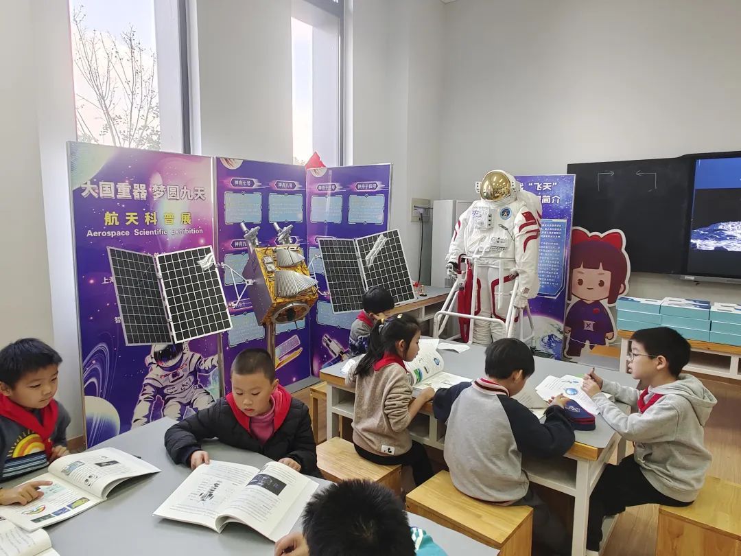 “卫星运行过程中是如何测温的?”“卫星通信是通过什么密码进行沟通的?”“让我们一起动手学习怎么拼出卫星!”……在上海外国语大学附属普陀实验学校,学生们正沉浸在有趣的航天知识学习中,他们所处的学习空间充满了航天元素,这里是学校开展航空科创教育的重要场所,也是学子们航天梦起航的地方。