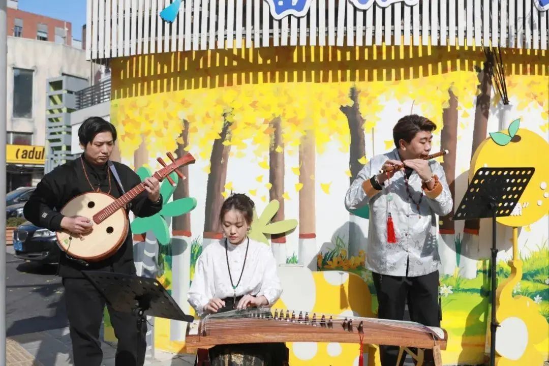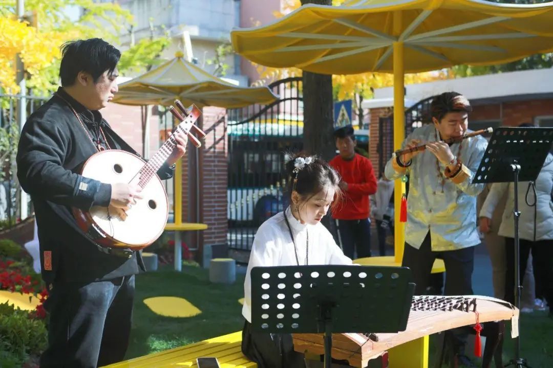 银杏树下,身着各式汉服的演奏者以乐会友,一首首温柔流淌的古典音乐伴着金色的银杏叶随风摇曳,美景与艺术相融,将带来视觉与听觉的双重享受。