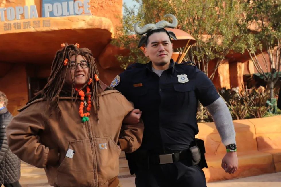 许多游客精心打扮,身着以“疯狂动物城”为灵感的别致造型和服装,与他们喜爱的动物相呼应,摇身一变成为动物城“居民”,全方位探索动物城丰富多彩的故事。迪士尼粉丝“盾盾”当天就化身“牛局长”,吸引了不少人的目光。
