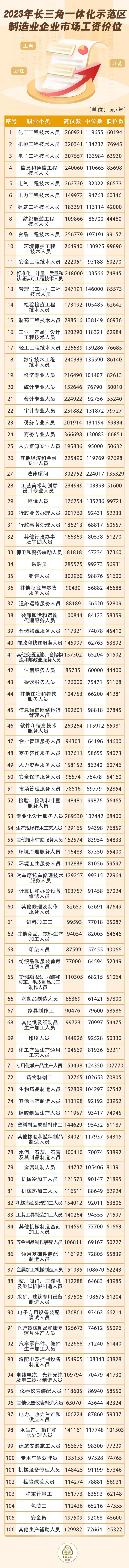 为促进长三角一体化示范区高质量发展,引导企业与劳动者合理确定各类岗位人员的薪酬水平,促进人力资源要素有序流动和高效配置,上海、江苏、浙江人力资源和社会保障部门联合对长三角一体化示范区(上海青浦、江苏吴江、浙江嘉善)内572户制造业企业、13.6万从业人员2022年工资性收入数据进行分析,共同研究形成《2023年长三角一体化示范区制造业企业市场工资价位》并联合向社会发布。