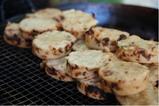 儿时的甜蜜,绝不能没有一口热乎乎的海棠糕。朱家角的海棠糕仅以面粉、老酵、豆沙和净猪板油作为材料,紫酱红的颜色,海棠花的形状,香甜绵软,内馅中的那一口猪油,更是海棠糕的灵魂所在,可谓是色、香、味、形俱佳。海棠糕不仅是一道甜食,更是一道文化的传承。