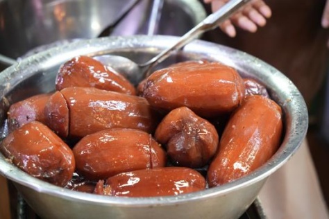 浓油赤酱是南方人唯一喜爱重口味。朱家角古镇的扎肉和蹄髈便是浓油赤酱的典型代表,粽叶包裹着肥瘦相间的五花肉,一口下去满满的肉香,这是多少人小时候做梦都能香醒的味道。每次来到古镇,谁不吵着让爸妈买上一块,立马尝尝。