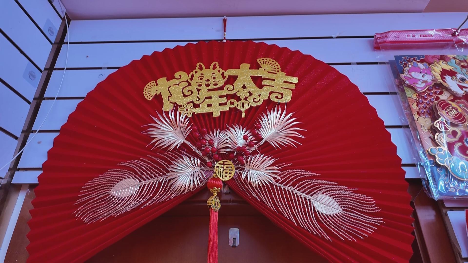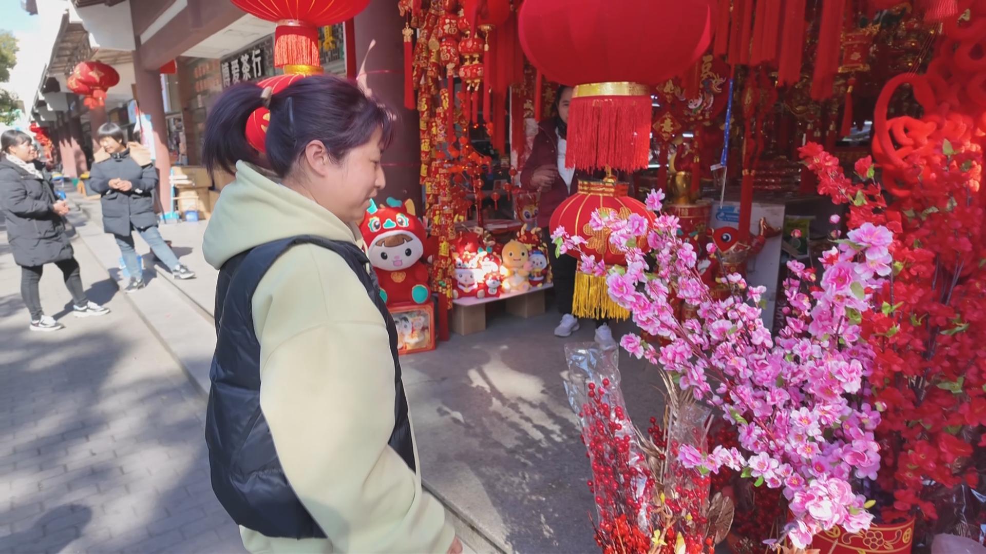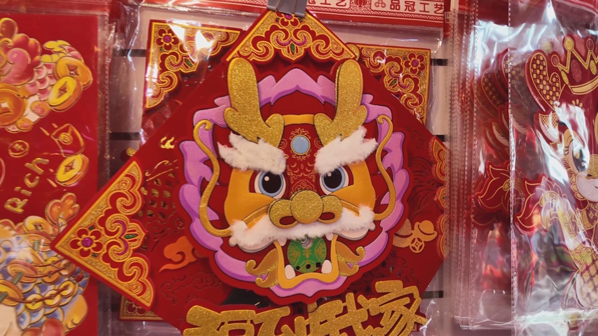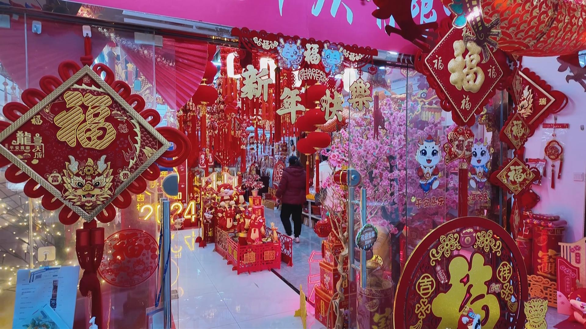 呆萌可爱的龙玩偶、招财纳福的龙年对联、精致独特的龙年窗花、充满年味的新春挂件和灯笼……吸引了不少顾客前来选购。