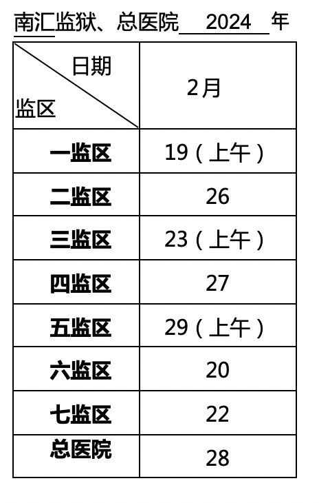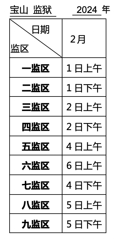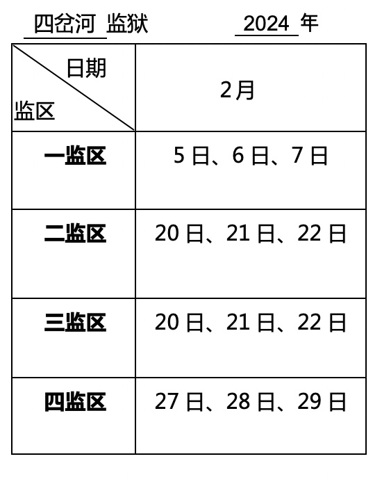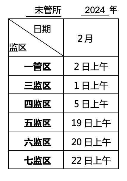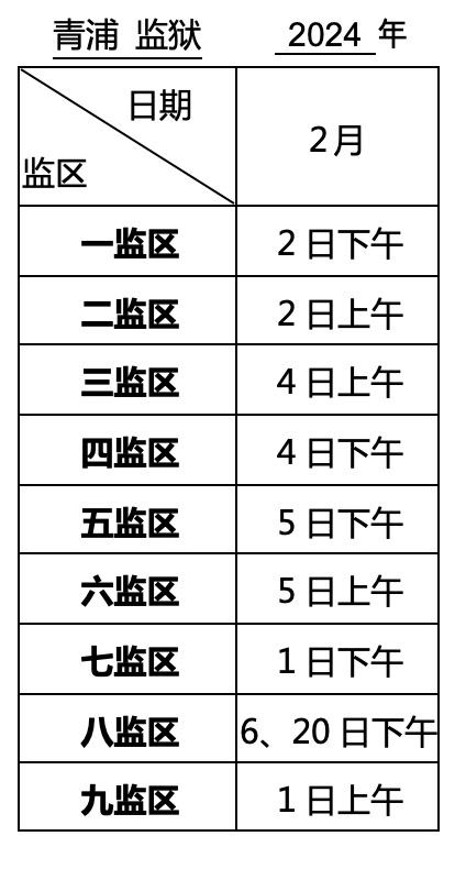 2、部分会见日可能有所调整,请关注上海市监狱管理局门户网站及“上海监狱”微信公众号。