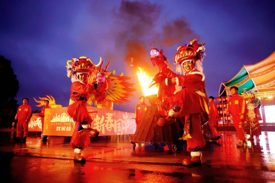 随后,现场参与者们手牵手,肩并肩,围绕熊熊篝火载歌载舞,以最热烈的方式迎接龙年的到来,舞龙团队带来的精彩“非遗舞火龙”表演更是将此次活动推向了高潮。“乐园内的龙元素很多,舞龙表演相当精彩,很有新年的氛围。”从嘉定前来游玩的市民刘女士观看表演后赞不绝口。