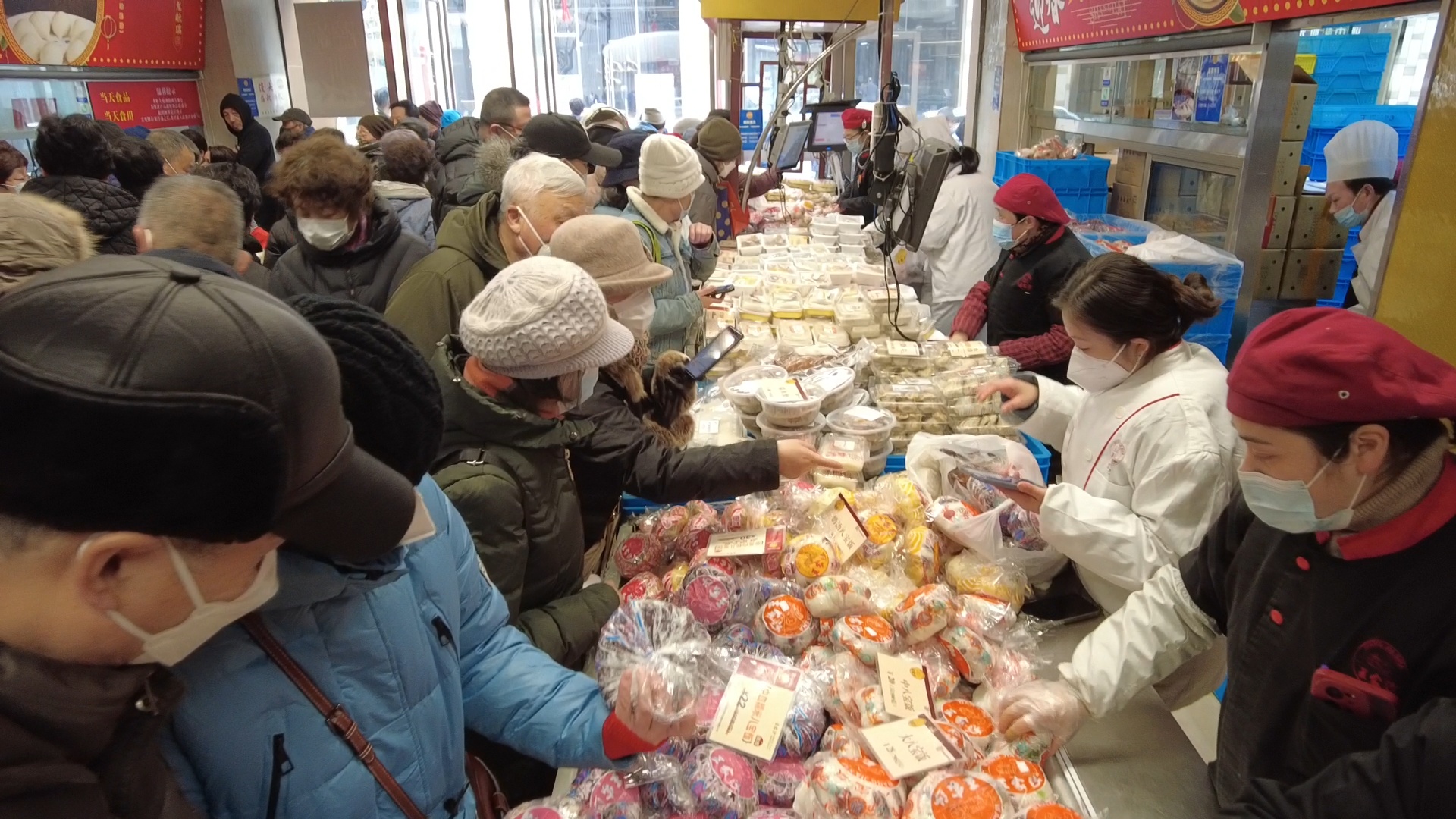 作为中华老字号、点心制作技艺被评为上海市级非物质文化遗产的王家沙,店内寓意来年节节高的松糕,甜甜蜜蜜的糖年糕,以及各式烧麦、蟹粉小笼、春卷等中式点心也列入了市民们的必买清单。