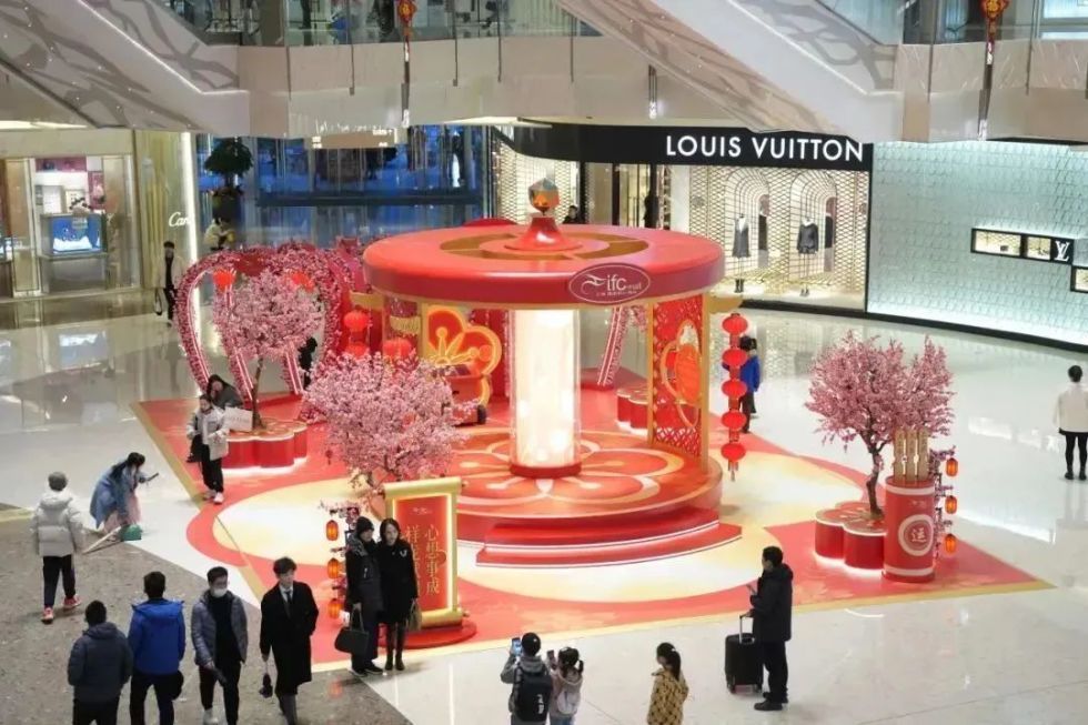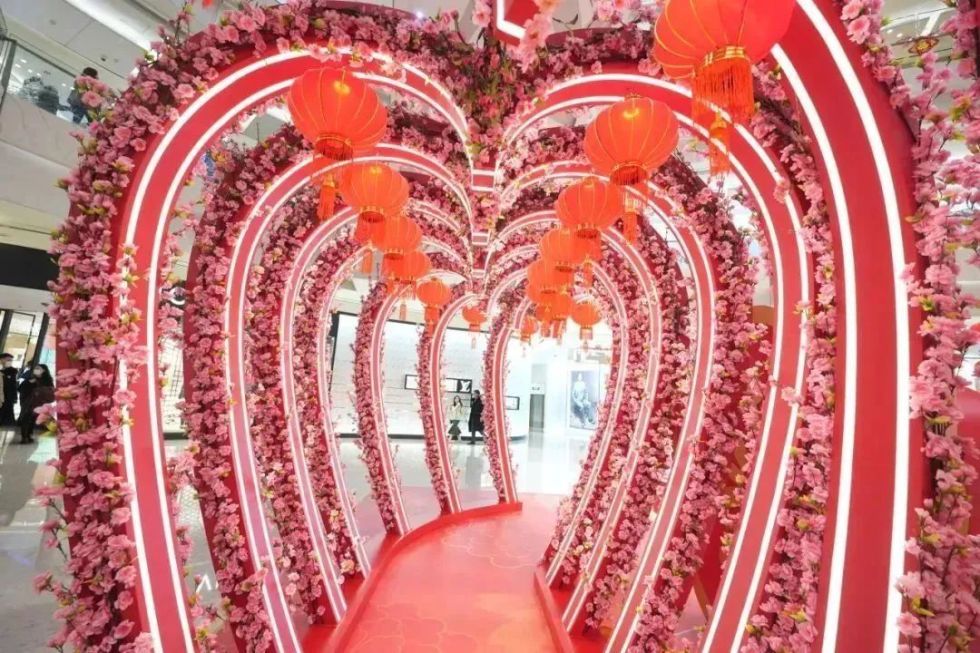 值得一提的是,农历初五正值情人节,因此商场特别打造了一座高达3米“浪漫爱心拱廊”,寄愿顾客新年幸福满载,好运常伴。