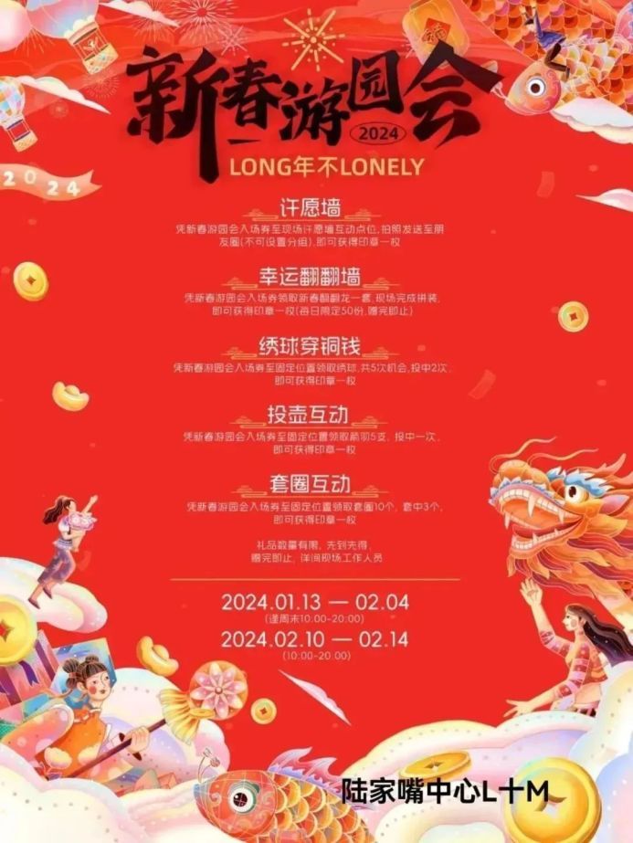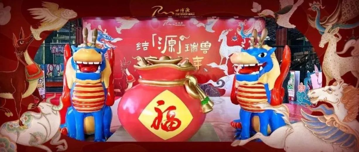 此外,尚悦湾广场的卡通IP形象“许愿龙”可爱呆萌,世博源携敦煌守宝神龙、幻羽飞马、莲花白牛、衔花飞雁等瑞兽带来新年祝愿,晶耀前滩提供春节主题场景、道具和专业摄影师,节日期间定时定点为顾客免费拍摄新年照。