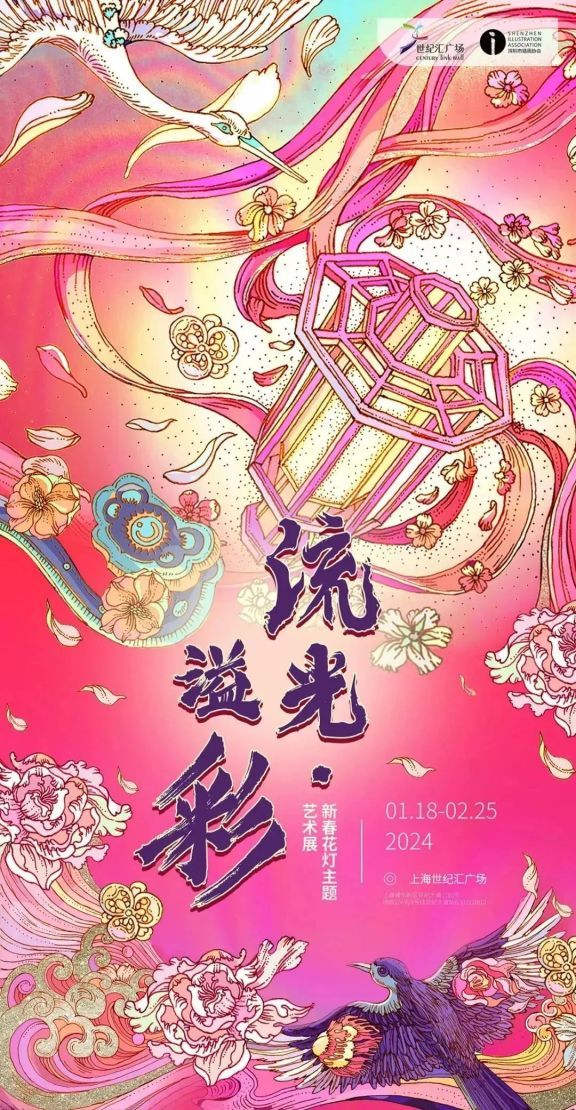 世纪汇广场邀请插画艺术家打造花灯主题艺术展,商场多处皆布置陈列着融合中国龙、祥云等中国传统元素的花灯。