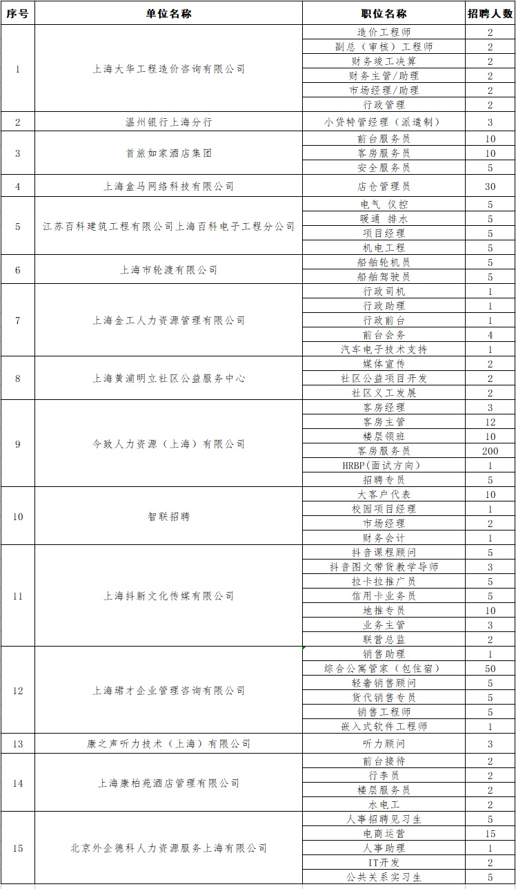 黄浦招聘会参会企业