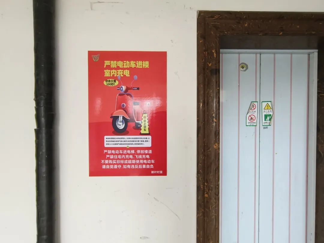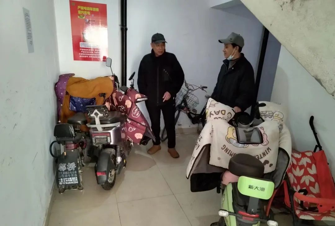 新叶村工作人员摸排了村内宅前屋后、楼道内的电动车停车及充电情况,重点检查了楼道内是否堆放可燃物、电动车停车充电是否规范、电动车是否堵住消防设施、有无电动车违规进楼入户以及私拉电线“飞线”充电等现象。