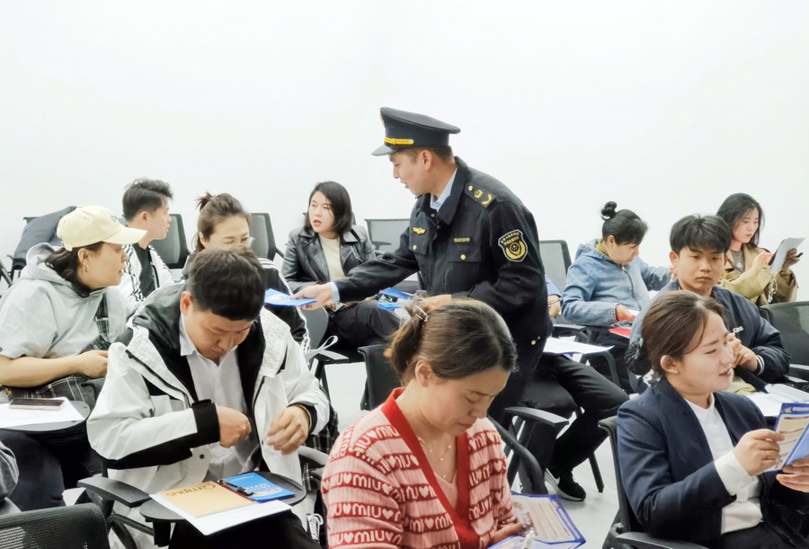 培训座谈会由市南区综合执法局副局长、五四广场旅游秩序专班负责人高翠菊主持,青岛市公安局市南分局对住宿业实名登记、网络谣言处理等强调了注意事项;市南区市场监督管理局对涉旅消费纠纷舆情作了分析指导;香港中路街道五四广场社区专业技术人员对消防和安全管理等方面进行了讲解。培训会上,相关部门向广大商户公示了业务工作热线电话,并发放了政策明白纸和诚信经营承诺书。