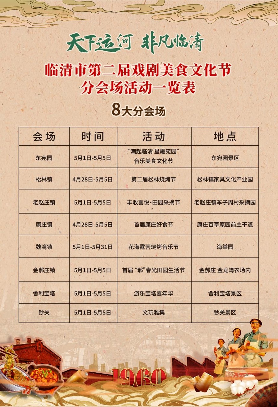 据了解,不同于往年单个点位的活动,临清市首次将美食文化节铺到了全城。活动以国棉厂为主会场,同时设立东宛园景区、运河钞关、舍利宝塔、松林镇、老赵庄镇、康庄镇、魏湾镇、金郝庄镇等八大分会场,以更多彩的文化荟萃,更丰富的乡土风情,更精妙的戏剧表演,更地道的美食盛宴,更全新的活动体验,为市民和游客带来一场视觉、听觉、味觉的饕餮文旅大餐,带来一次全方位的文旅体验之旅。
