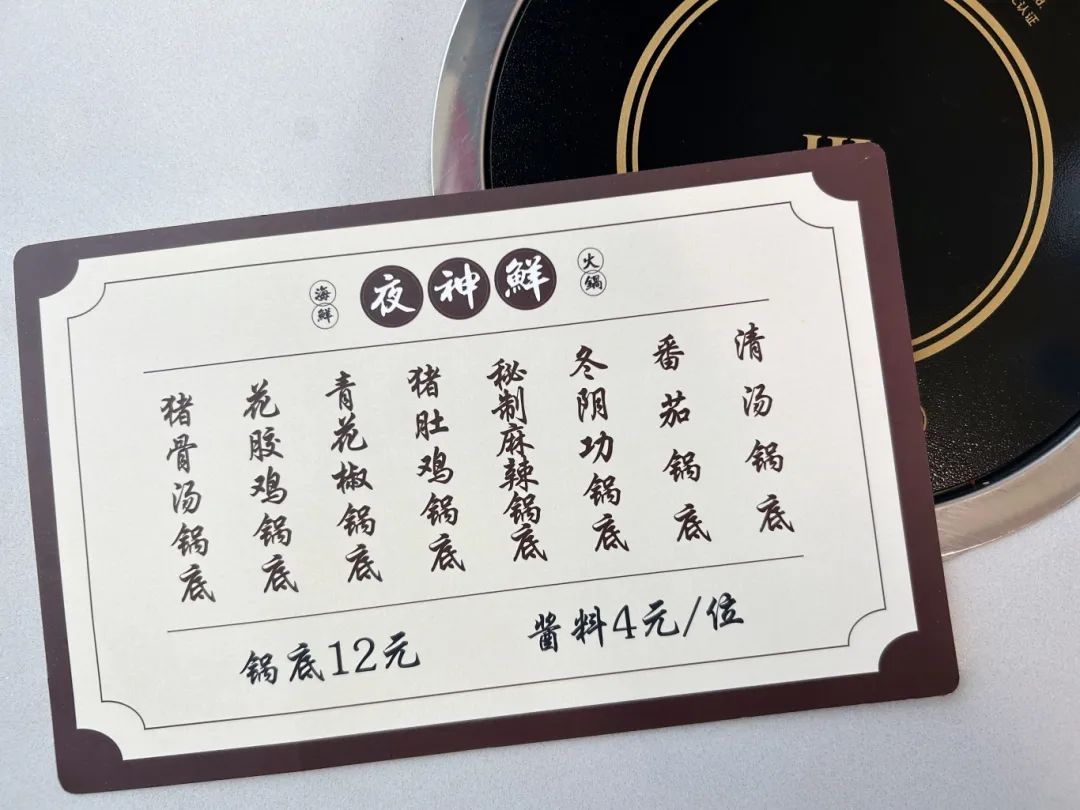 选座后,第一步是点锅底。所有锅底统一12元,吃货老板推荐:喜欢吃海鲜本味的,点清汤;喜欢鲜上加鲜的,点花胶鸡;喜欢香浓酸甜的,点番茄锅,不会错~酱料4元一位,品种足有两排。最中间的是老板秘制酱油,味道偏甜,比较适合上海人的口味。