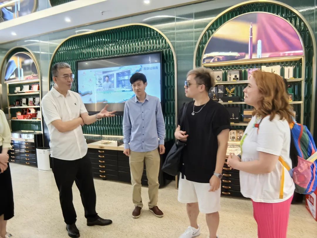 展柜前,英雄集团副总经理董文斌用流利的英语,向中外设计师们介绍了百年国货品牌的创新之路:“如何迎合年轻消费群体,把英雄品牌变得更时尚,其实还是要靠你们设计师,欢迎大家多给我们提提意见和设计思路。”