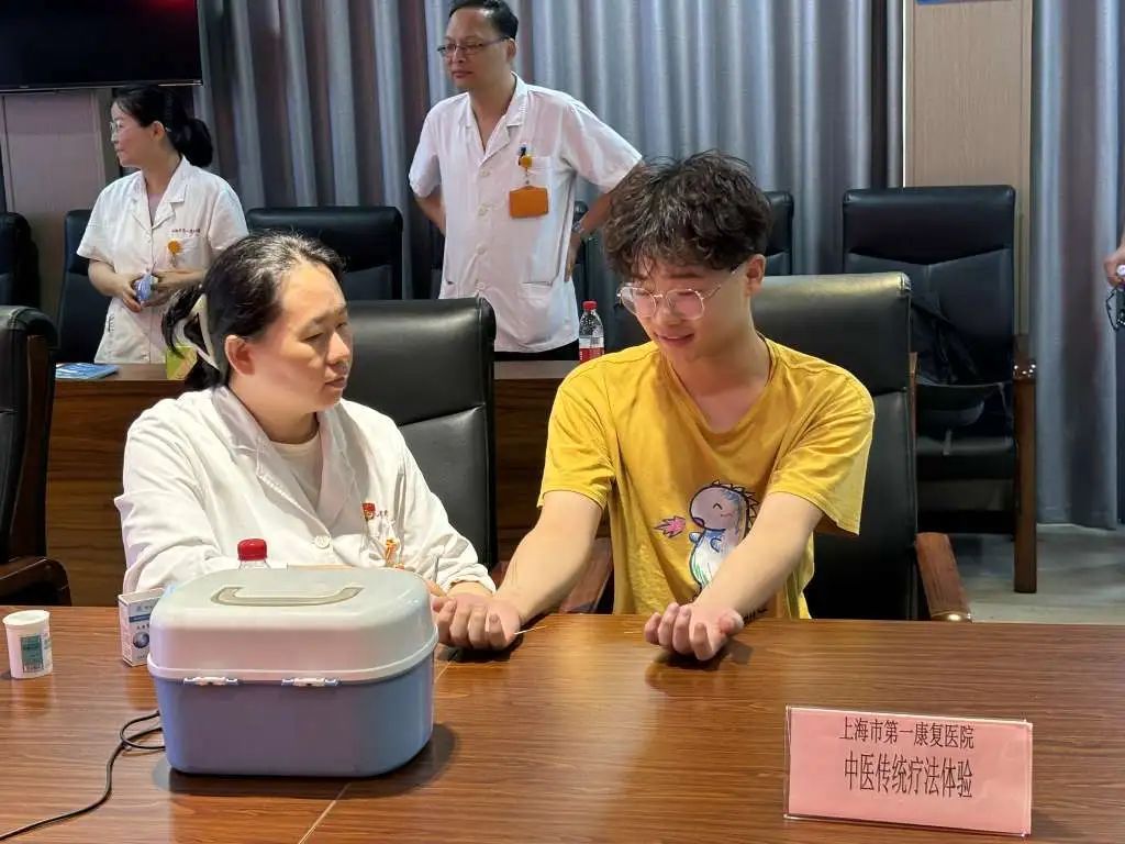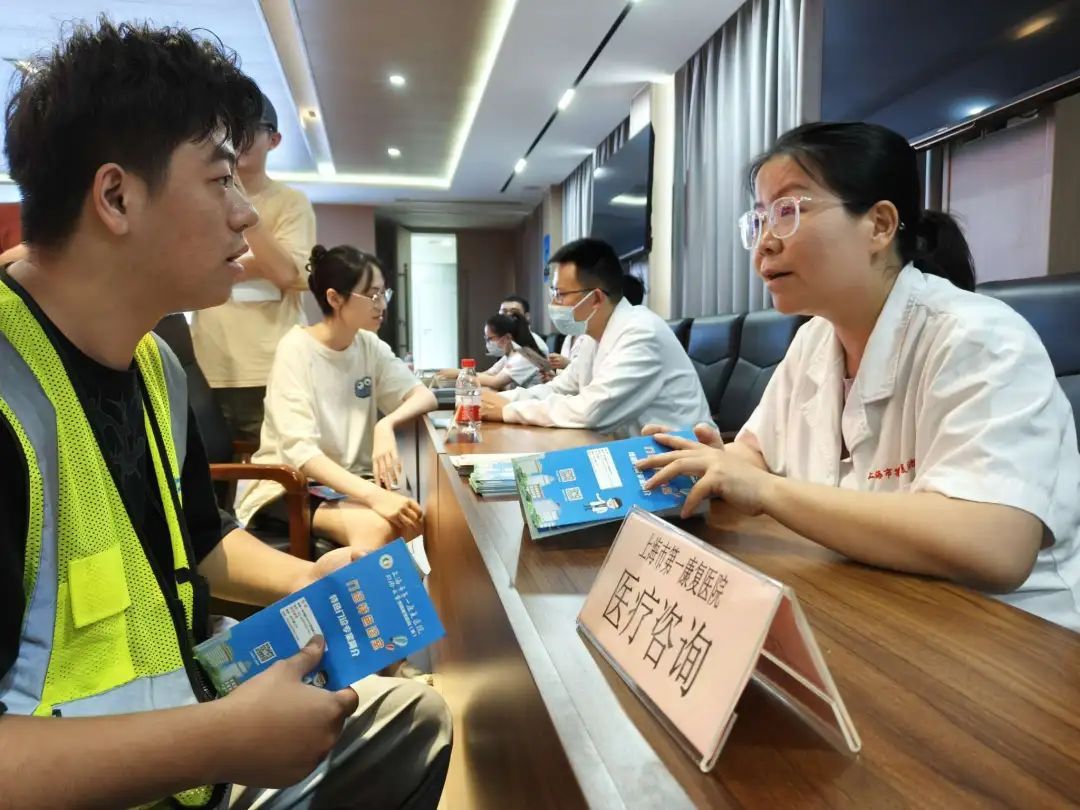活动现场,上海市第一康复医院的医疗团队为工人们提供了全面的健康体检服务,包括康复理疗体验、医疗健康咨询、血压测量服务等。中建三局工程部施工员韩松辰在现场测量了血压并接受了有关神经和骨科的健康咨询项目,医生根据现场的评估对他提出针对性的调整措施。韩松辰表示“这样的上门服务很贴心”。