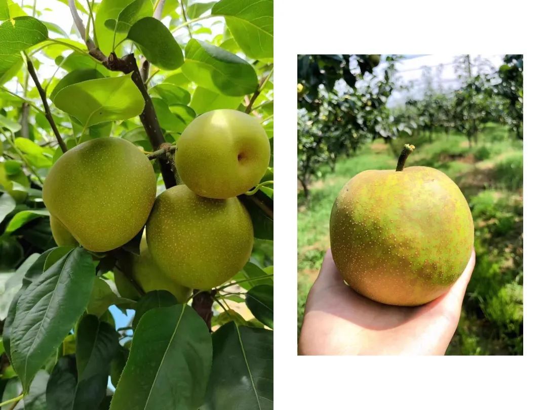 这些果形小巧圆润、果皮泛着淡淡金黄色,与其它品种的生梨相比,果皮更薄、更脆,果肉也更细腻清甜,平均糖度在13度以上,可以称得上是梨中上品。