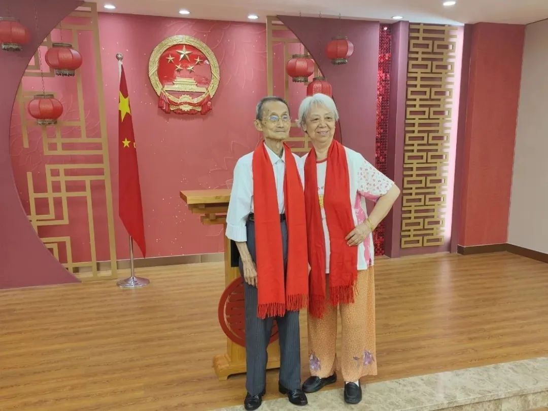 8月9日,在嘉定区婚姻登记管理所,7对夫妻共同参与了“爱的印记”七夕活动。居住在鸿达嘉苑的吴静江和顾惠琴老两口,是现场唯一一对钻石婚夫妻。吴静江今年85岁,顾惠琴82岁,结婚已经61年了。