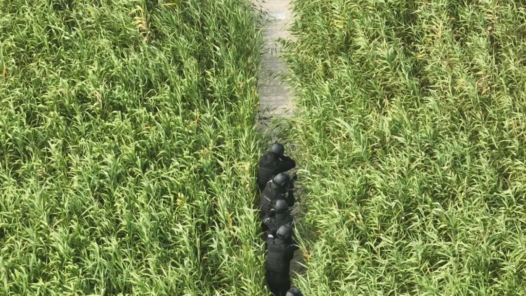 海域边,一处视线受阻的芦苇荡中,一支战术小组也正在进行陌生地形排摸训练,闷热的芦苇荡、全副武装的队员,一趟又一趟的来回搜寻,发现并排除教官们设置的目标点位。据介绍,从室内练兵走向室外是本次夏季练兵的另一大特色。
