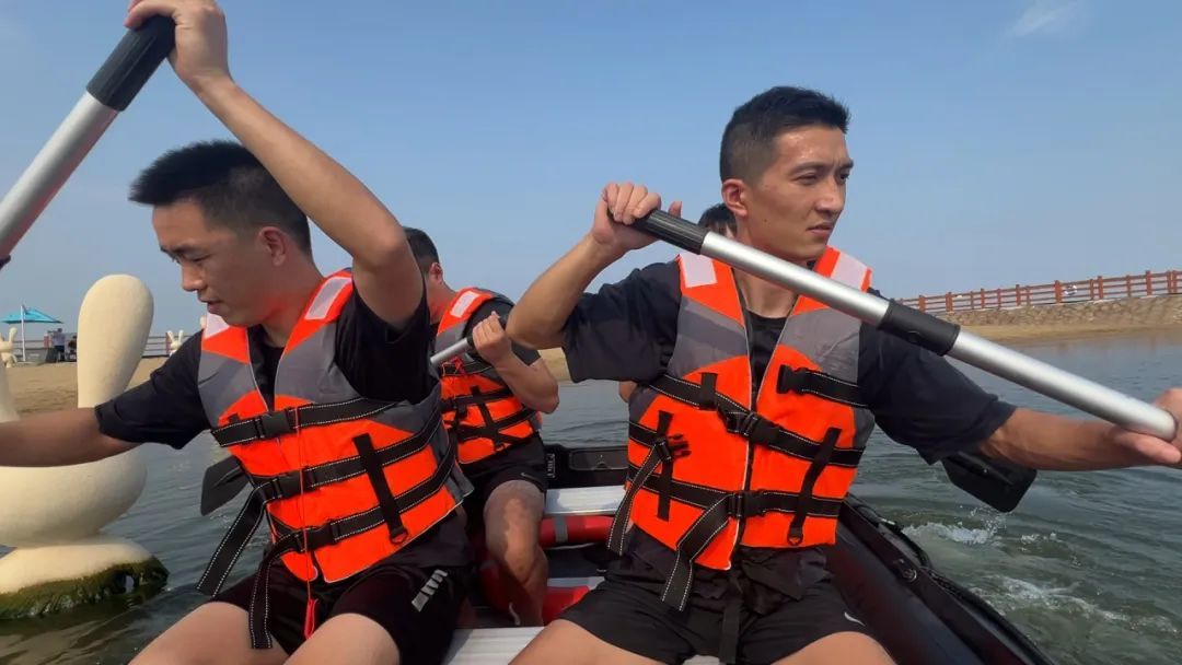 而另一边,一名群众在海边游泳时不慎发生溺水,接警后,特警队员抬起冲锋舟,奔向水中,滑动船桨,迅速向落水群众驶去,并将其成功救援至舟内。