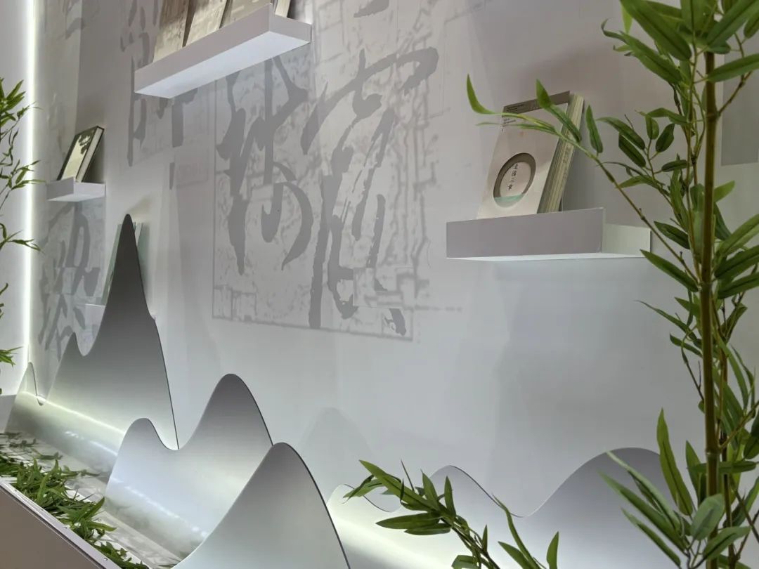 在素净柔和的灯光下,书籍、竹叶、假山设计构成了美好的“江南园林风景图”。该出版社于本次上海书展首发的新系列文创,以“行走江南园林,感受四季呼吸”为理念,传递给读者一份独特的雅趣。