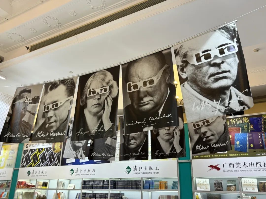 各位名家大师的相片被制成了颇具复古气息的画布,活泼又幽默地带领着读者进入他们的文学世界。各类经典著作以简洁美观的设计陈列于展台上,令人目不暇接。