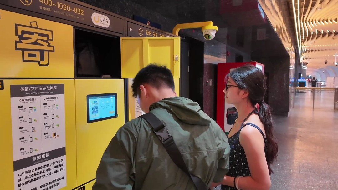 游客刘先生在工作人员的帮助下,顺利地将自己的双肩包等行李寄存进了寄存柜。他表示:“这个服务非常好,之前都没有。现在我们带行李的时候可以放在这里,去游玩就方便多了,可以省去很多麻烦,不用拎着大包小包到处跑了。”