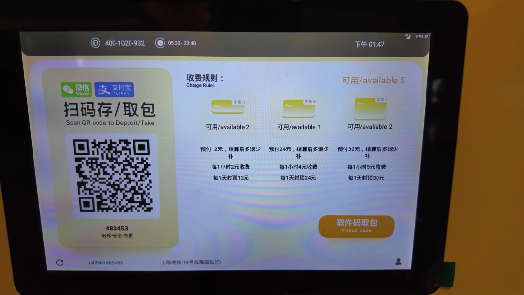 记者今天一早探访了14号线豫园站,发现这里的行李寄存柜已经完成了扩容。新增设的寄存柜包括38个大格口,可容纳28寸大件行李箱;14个中格口,适用于21寸行李箱;以及14个小格口,方便存放双肩包、购物袋等物品。乘客只需扫描寄存柜上的二维码,经过实名认证后,即可轻松寄存行李,享受便捷的出行体验。