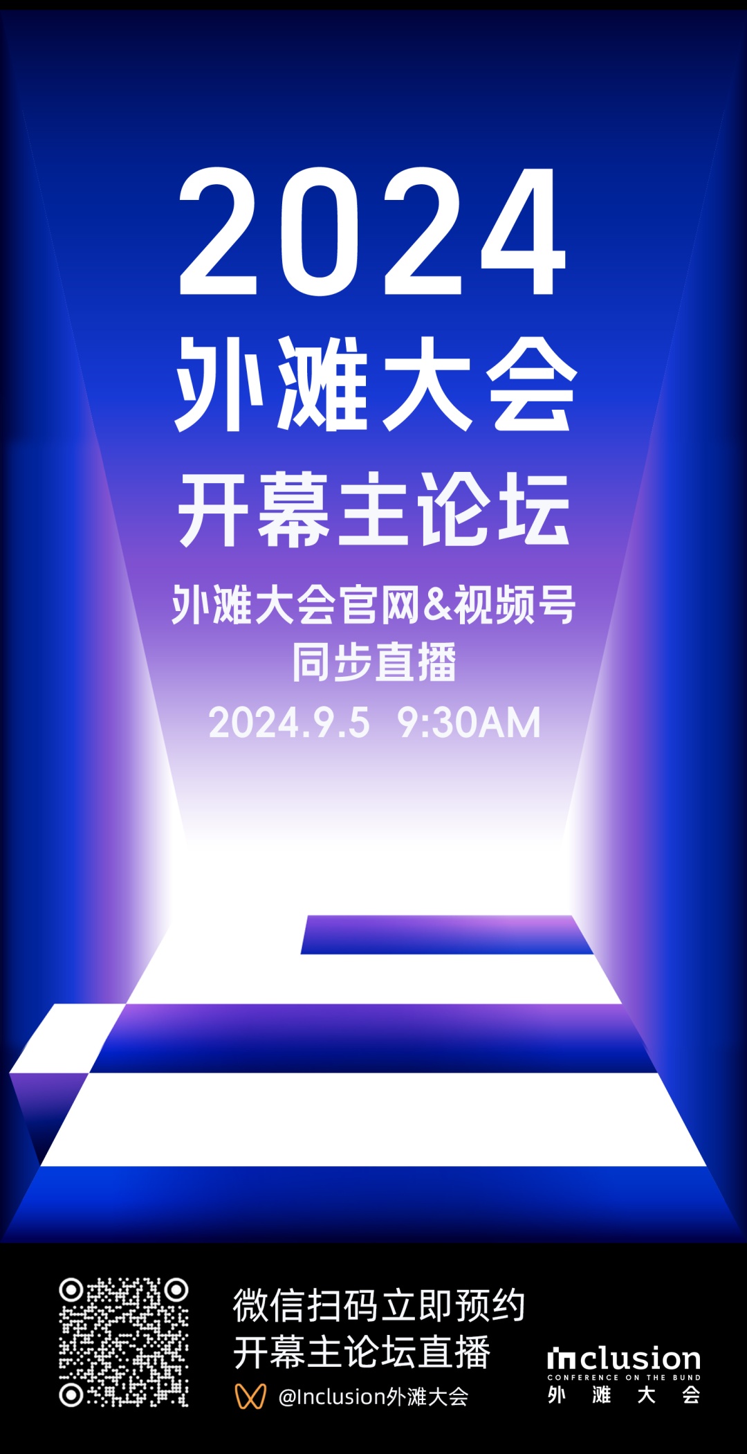 “2024 Inclusion·外滩大会”将于2024年9月5日上午9:30在上海黄浦世博园区开幕。外滩大会官方网站、官方微信视频号将同步进行开幕主论坛直播。