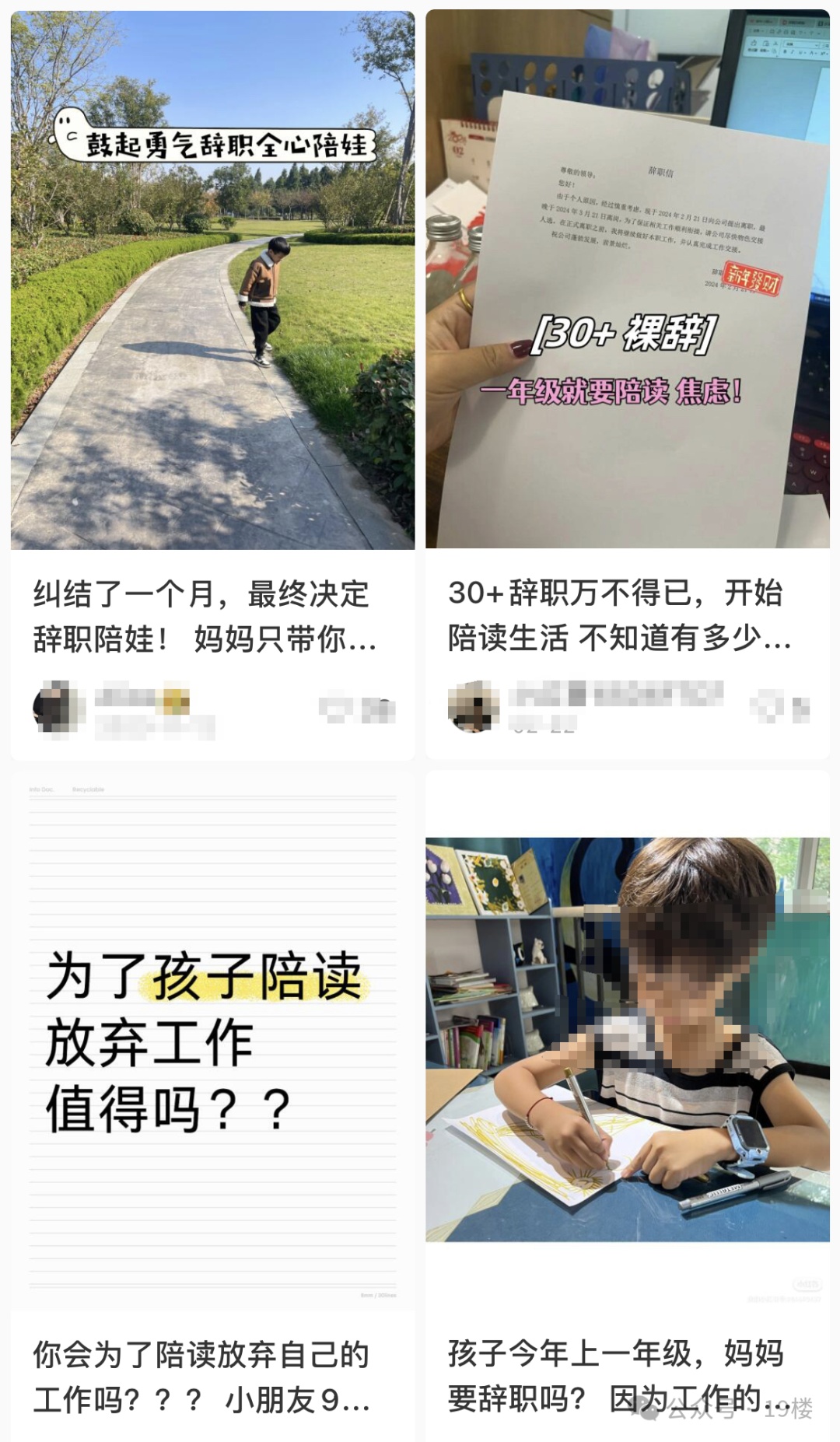 “做这个决定真的太难了!从怀孕到带娃头三年都熬过来了,没想到上一年级了反而要辞职。”杭州妈妈蒋女士回忆起一年前做这个决定时,仍然有些遗憾。