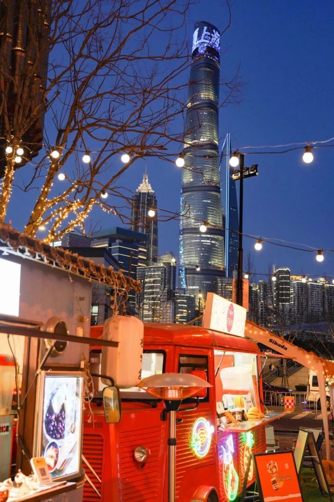 与藏在小巷子里的夜市小吃街不同,坐落在黄浦江畔的外滩枫径夜市,是上海潮流、烟火气息、精致优雅三者合一的聚集地。一抬头,黄浦江畔的魔都三件套映入眼帘。夜市主题时常更新,长期有乐队驻唱,并举办音乐季活动,堪称氛围感的神!