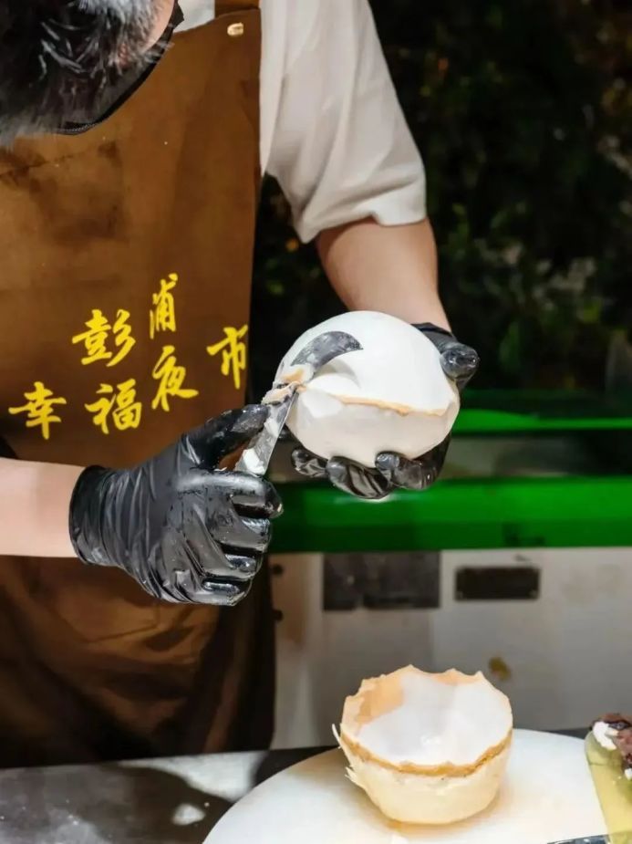 如今的彭浦幸福夜市品类更丰富,环境也更整洁了,麻辣小海鲜、衢州鸭头、爆浆鸡蛋仔、东南亚烧排骨、老成都串串香、老挝冰咖啡……天南地北美食荟萃。