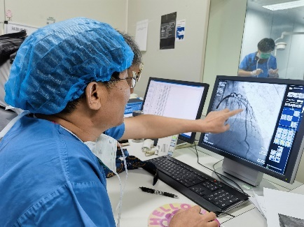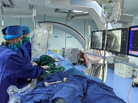 近日,奉贤区中心医院心血管内科开展了奉贤区首例震波球囊术,为复杂冠脉钙化病变再添新武器,进一步开启奉贤区冠脉复杂病变治疗新篇章。 患者张某,69岁,有高血压、糖尿病病史10多年,最近出现不稳定型心绞痛,收住院后择期行冠脉造影检查,造影结果提示:左前降支近段至中远段95%严重狭窄,IVUS(血管内超声)提示360°环形钙化。乔增勇主任团队尝试球囊预扩张,普通球囊+高压球囊反复扩张10余次均不能撼动钙化斑块一丝一毫。乔增勇主任意识到再这样继续扩张下去可能会导致冠脉夹层甚至冠脉穿孔等严重并发症。 高压球囊扩张,呈“狗骨头”效应(箭头处) 在医院的统筹协调下,震波球囊很快到位。乔增勇主任、葛广豪主任医师及杨立国主治医师密切配合,先是利用震波球囊在钙化病变处进行5组脉冲治疗,待钙化的组织被“震碎”后,可见震波球囊完全膨胀,IVUS证实360度“戒指样”钙化环被震开,再次高压球囊扩张后在病变处进行支架植入,术后IVUS进一步证实左前降支架膨胀贴壁好,恢复完全通畅状态,患者病灶得到解除。 术前(前降支95%弥漫性狭窄) 术后狭窄消失 震波球囊技术 震波球囊技术又称血管内冲击波碎石术,是利用设备将电能传递到发射器上,通过发射器产生声波压力波,将球囊内液体汽化,借助气化的液体对血管内膜、中膜的钙化组织进行隔空“敲裂”。 优点: 1.针对性强,只针对钙化组织,对正常血管组织无影响; 2.冲击波治疗后可增加血管顺应性,让血管“恢复年轻态”; 3.有些钙化病变需要震波球囊联合旋磨及切割球囊等“组合拳”方能解决。 奉贤区中心医院心血管内科针对复杂冠脉钙化病变,根据病变特点已成功开展旋磨术,切割球囊及棘突球囊等技术。目前再添新武器“震波球囊技术”,为奉贤区复杂冠脉病变治疗插上新的翅膀,让区内复杂冠脉病变患者不出奉贤即可享受市区三甲医院同质化优质医疗服务。