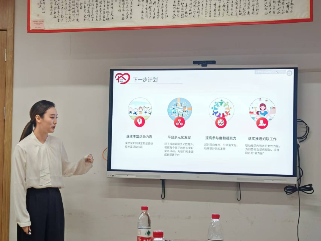 社工们结合课堂所学,以“四百大走访”为精准服务“垒墙”,摸排走访社区亲子家庭,了解每个孩子的爱好特长、实际需求与想法,并建立电子档案;以亲子家庭的需求与特长为导向,经街道深入指导、居委内部多番讨论,创建“童文化”品牌,开展以儿童为主角的平安宣传、绿色环保、爱我中国、健康童心、童声问候五大类小队活动,极大地激发了孩子们参与各类社区实践、主题活动的积极性,一支优秀的儿童自治队伍从“雏形”到逐渐“丰满”。