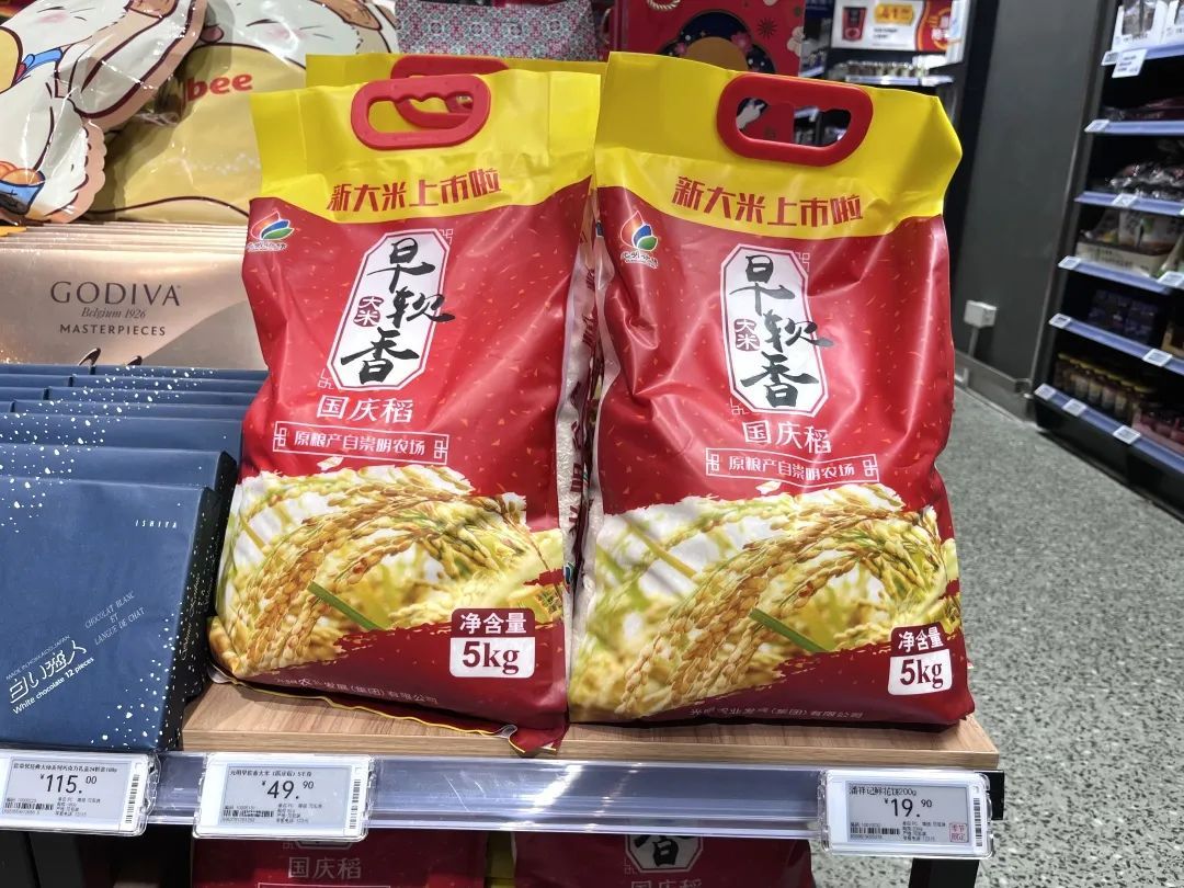 由于新米具有含水量大、口感软糯、有嚼劲等特点,每年只有秋收季才能吃上现碾米,所以广受老百姓的喜爱。据店员介绍,这款大米源自位于上海的光明农发集团崇明基地,来源可追溯,全程跟踪。一般在每年9月中下旬成熟并上市,因上市时间临近国庆假期,所以被称为“国庆稻”,其稻谷颗粒饱满、煮熟之后口感软糯香甜。