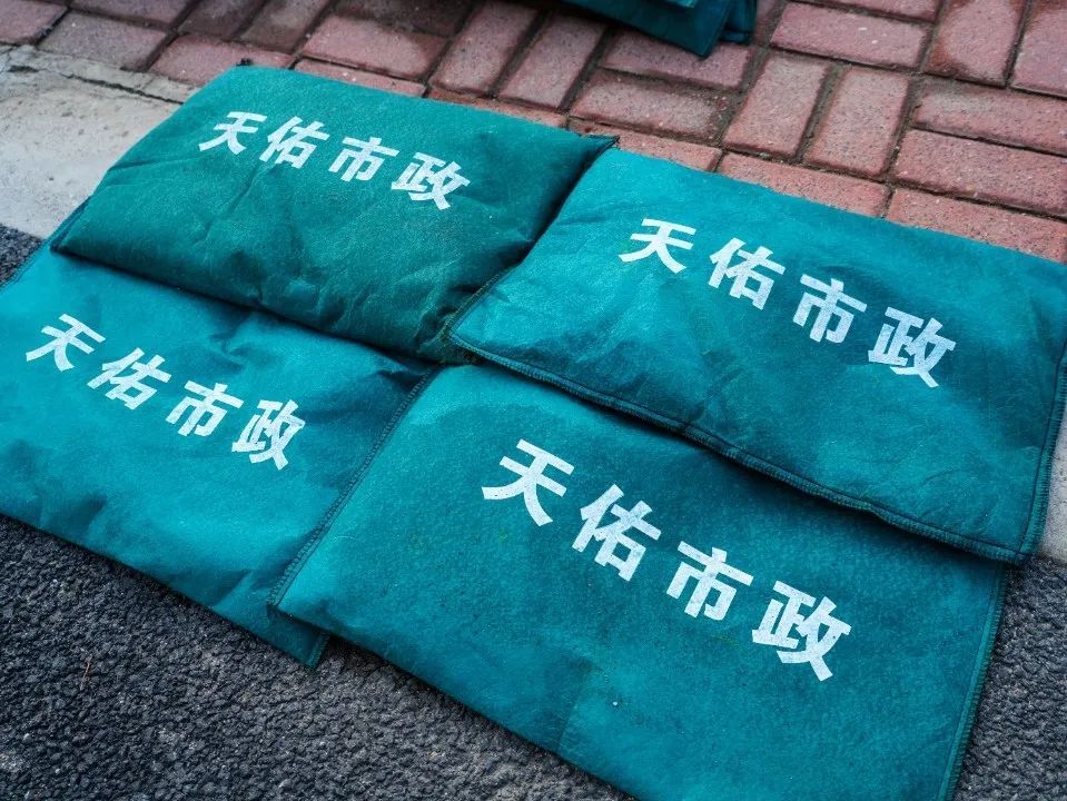 使用吸水膨胀袋封堵雨水及进水口,减少不明化学物质对地下水环境的影响。