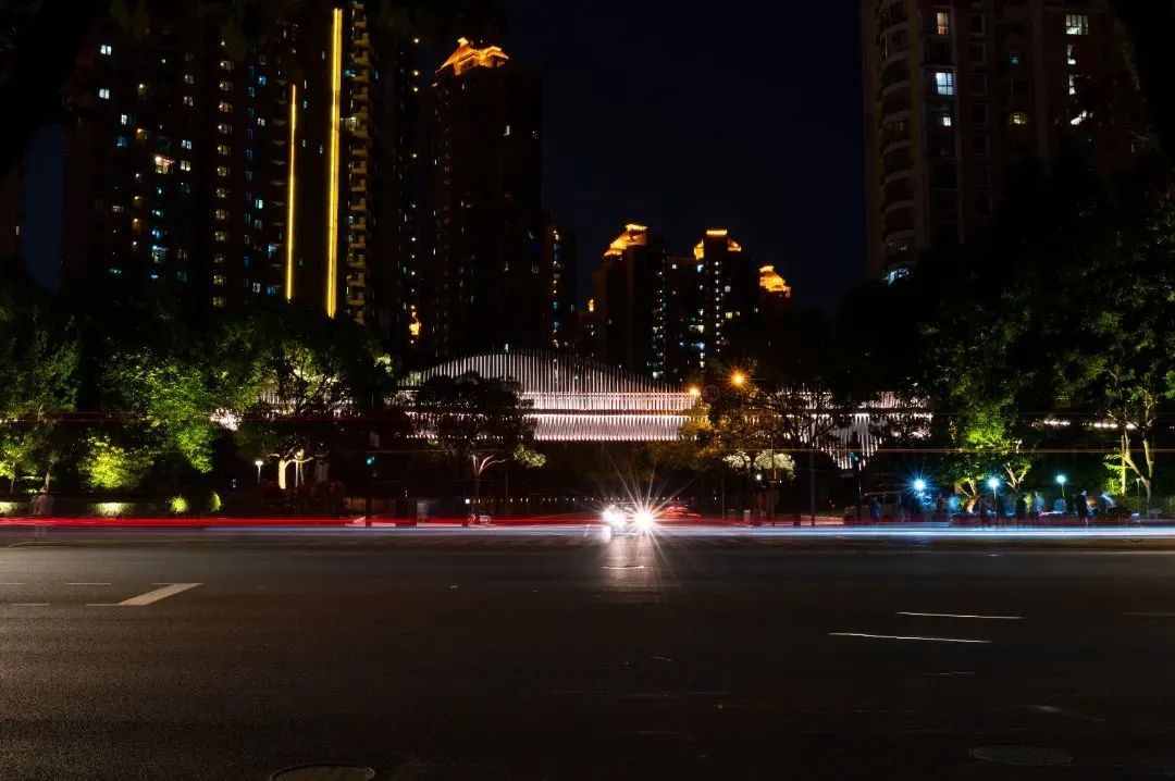 夜色下的中山公园万航渡路,树影斑驳。林荫道沿线勾勒出温暖的灯光,行人悠闲地漫步,享受着这份宁静与惬意。