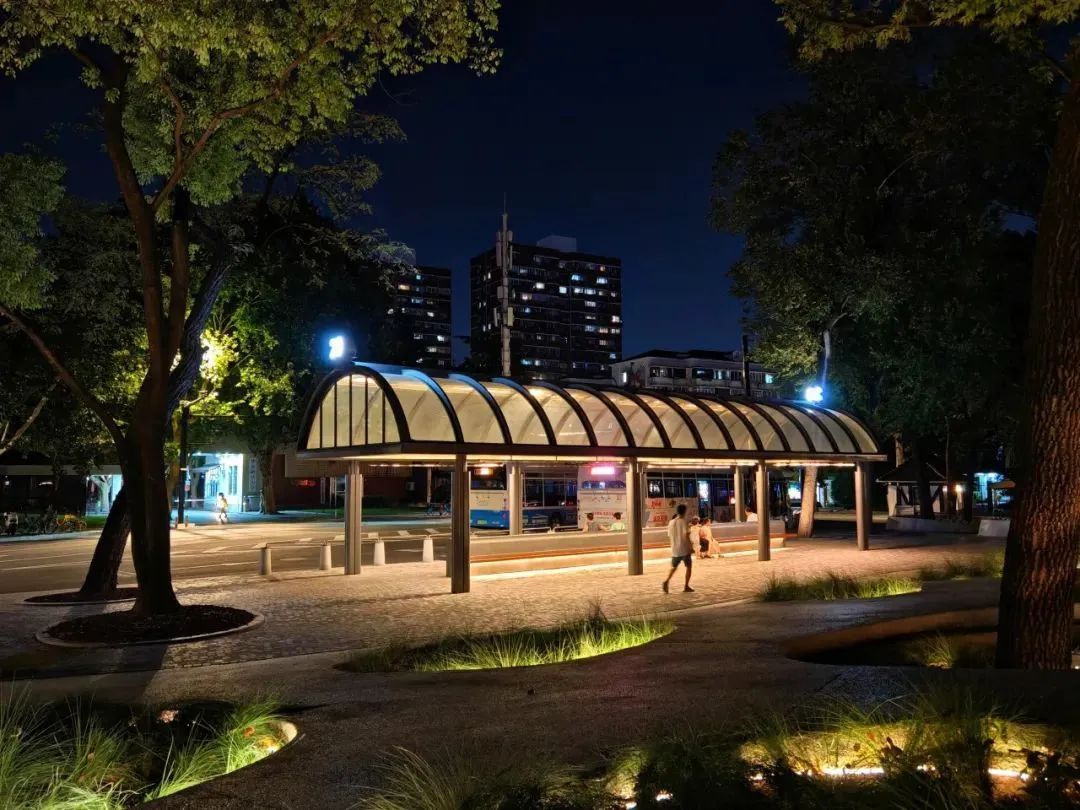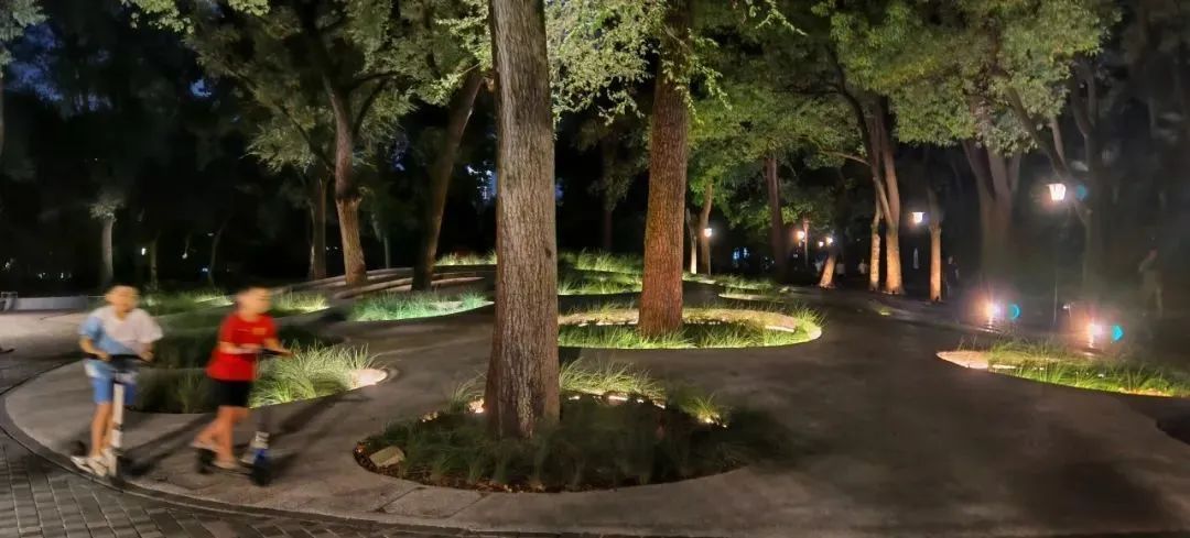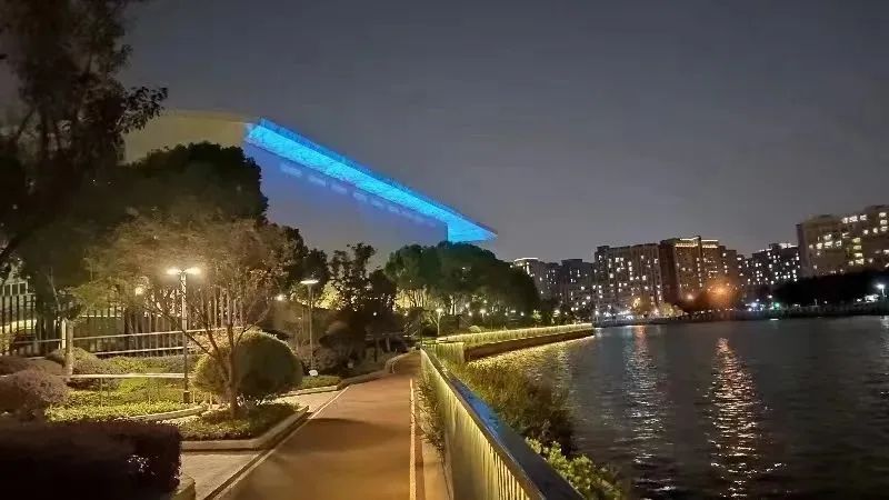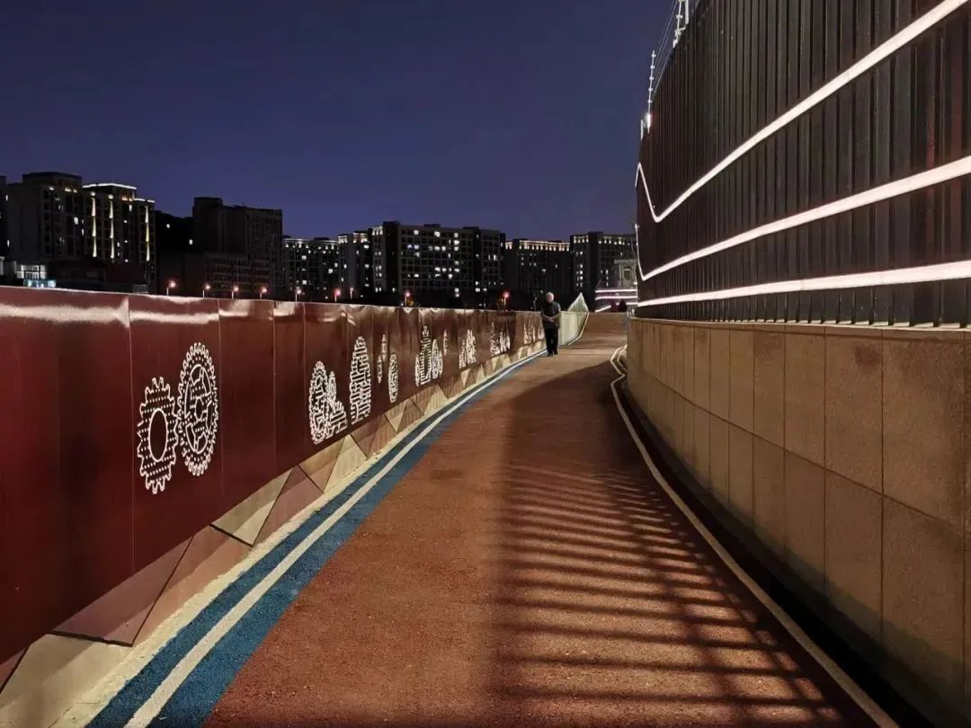 海烟物流段的夜景灯光,包括庭院灯、扶手灯、互动灯光秀等,既赏心悦目,也提升居民夜间休闲锻炼的安全性。