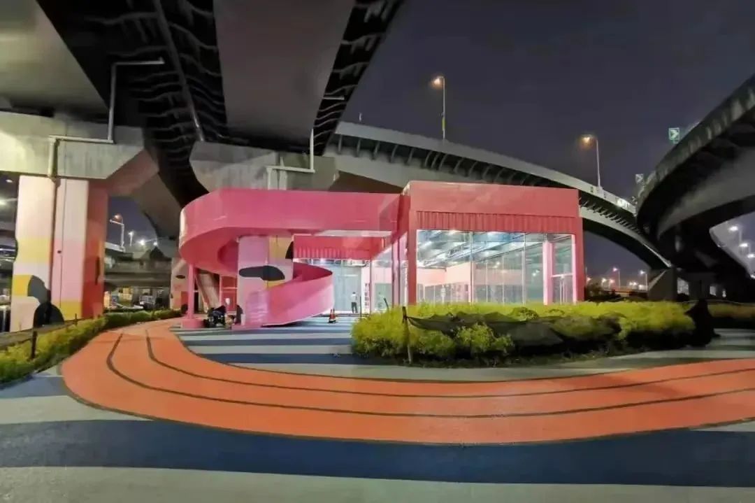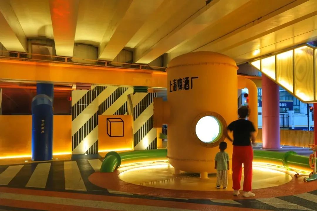 “苏河超级管”位于江苏北路桥下空间,是一处集便捷通行、休闲娱乐、创意打卡功能于一身的滨水公共空间,也是不少市民喜欢的网红打卡地。夜晚的苏河超级管里很热闹,梦幻般的多巴胺色系充满魔力,各种艺术装置更是让这块空间变身成乐园。