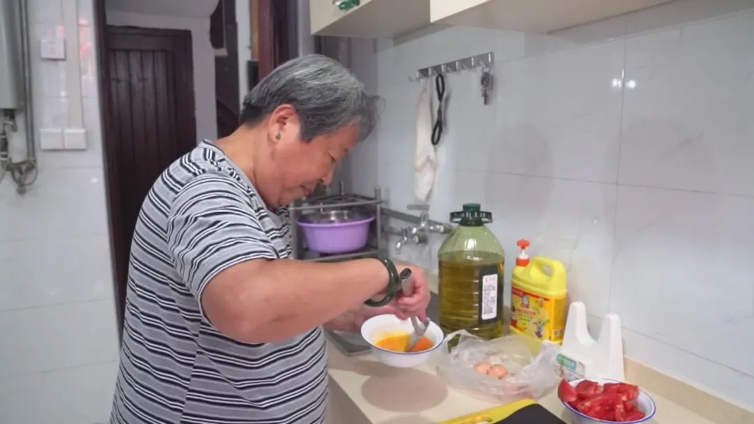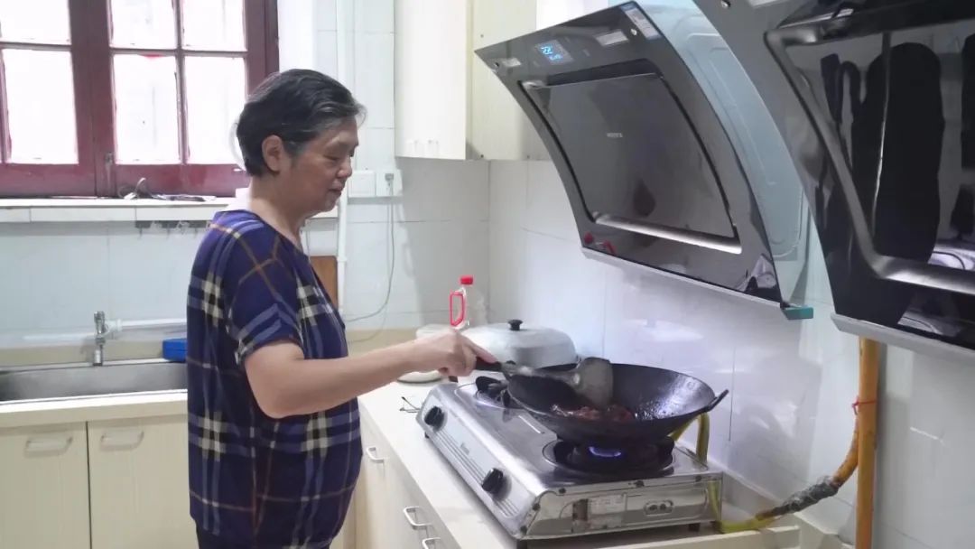 年近8旬的袁春英在宝安路160弄系统公房居住了大半辈子,对于此次大修,无论是功能设施和装修细节,她都十分满意。国庆当天,在崭新的厨房间里,袁春英做了第一顿饭,“厨房间在国庆前就已经装修好了,装修得清清爽爽,现在(做饭)心情是相当好。”为了庆祝在新厨房烧制的第一顿饭,袁春英特地炒了一份番茄炒蛋,“番茄象征整个社区大家庭,希望大家和和睦睦,日子红红火火。”