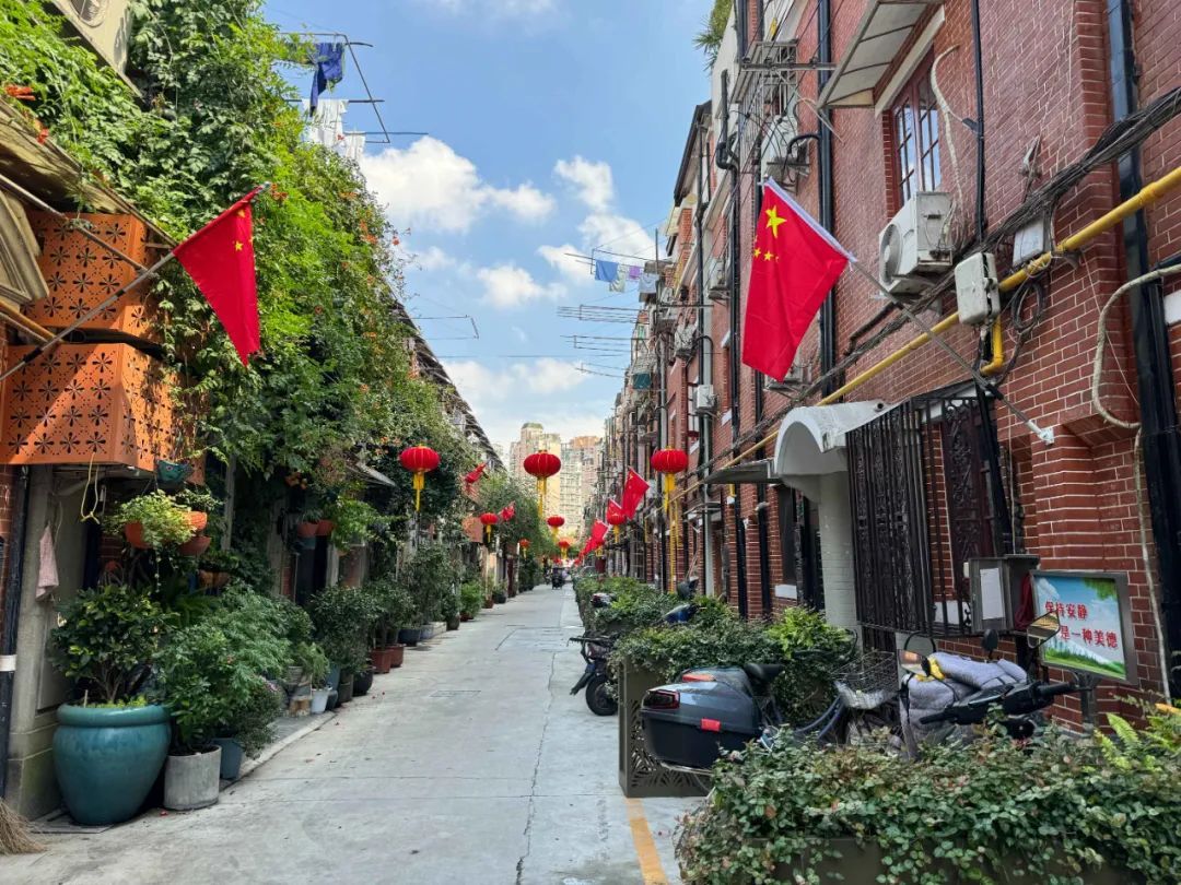 大红灯笼高高悬挂,五星红旗随风飘扬,宝安路160弄小区张灯结彩,一片喜气洋洋。上午十点刚过,今年72岁,在宝安路160弄生活了30多年的葛福女在新厨房里忙开了。为了庆祝在“新家”的第一个国庆节,葛福女一大早去菜市场买了几只鸭腿,准备做家人最喜欢吃的酱香鸭腿。