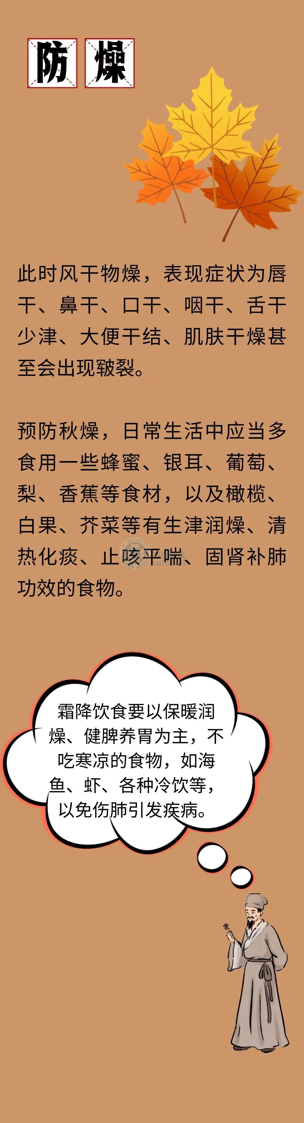 霜降时常有冷空气侵袭,气温骤降,且早晚温差大,时冷时热,经常会让人感到措手不及。因此,要做好霜降时节的养生保健,无论是在起居养生还是运动调养上都应谨慎。