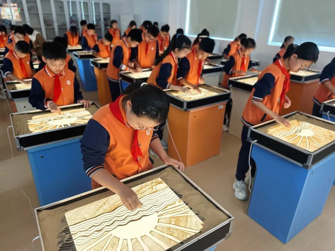 学校根据小初学段衔接的需求,引进民乐、民族舞蹈、声乐课程,加之本校学生喜爱的课程,如沙画、掐丝珐琅画、软陶,构建“乐动艺美”美育课程;