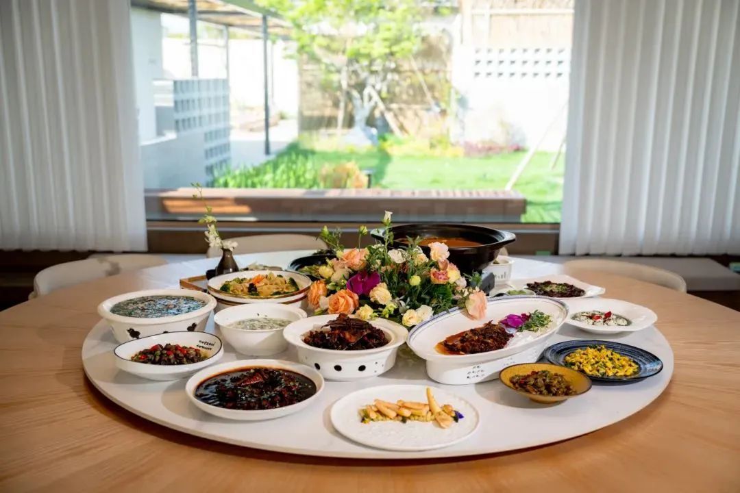 村内新开的桃花源餐厅,每一个角落都蕴含着诗意与浪漫。这里的菜品,以融合创意本帮菜、苏式面食以及各类糕点、小吃为主。